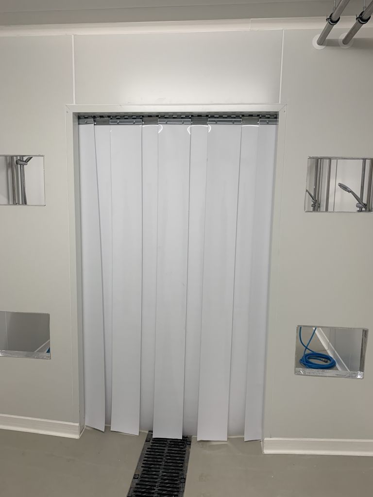 Exécution en lanière PVC souple transparent à bords arrondis, de qualité polaire de 300 mm de large et de 3 mm d’épaisseur, avec un recouvrement de 100%. Chaque lanière est interchangeable une à une.
